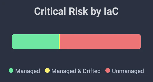 - 64% of resources with Critical Security misconfigurations are unmanaged by IaC