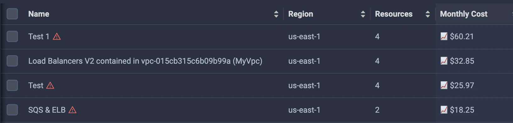 - Below is a list of the unmanaged-by-IaC resources with the highest associated cost: